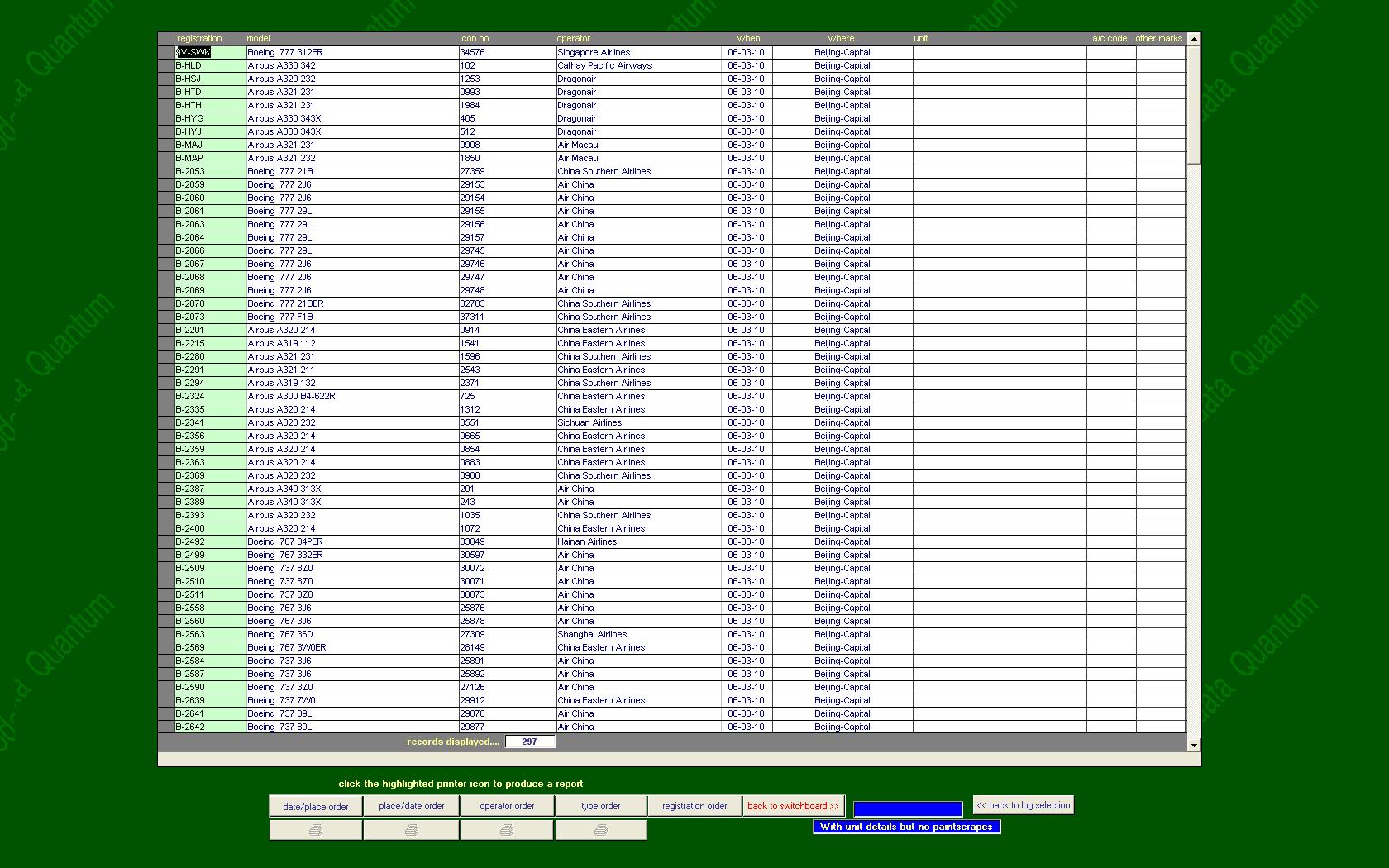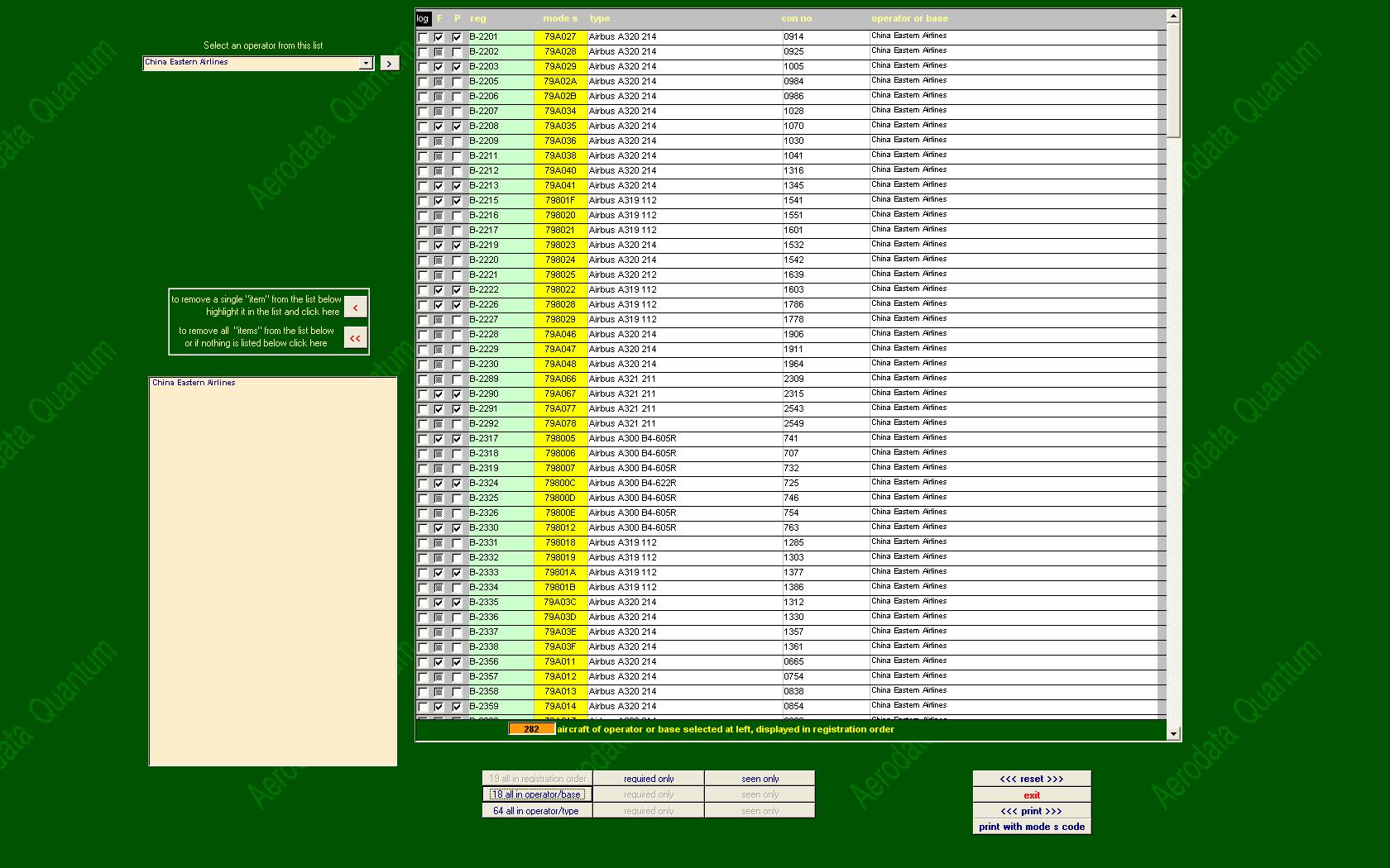 and airline fleet lists even multiple operators if you wish, |